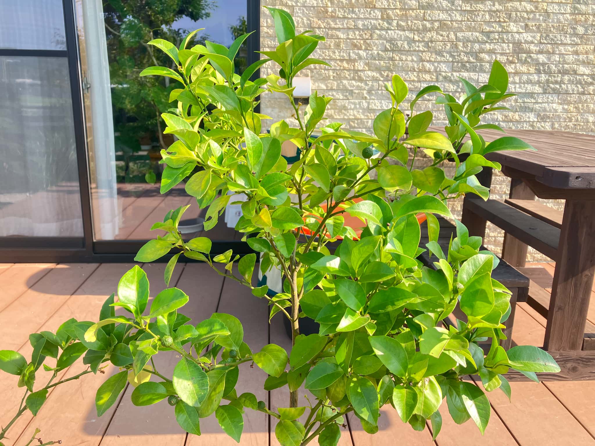 春に開花したレモンですが、生理落下もすみ果実が確実に実り始めました!